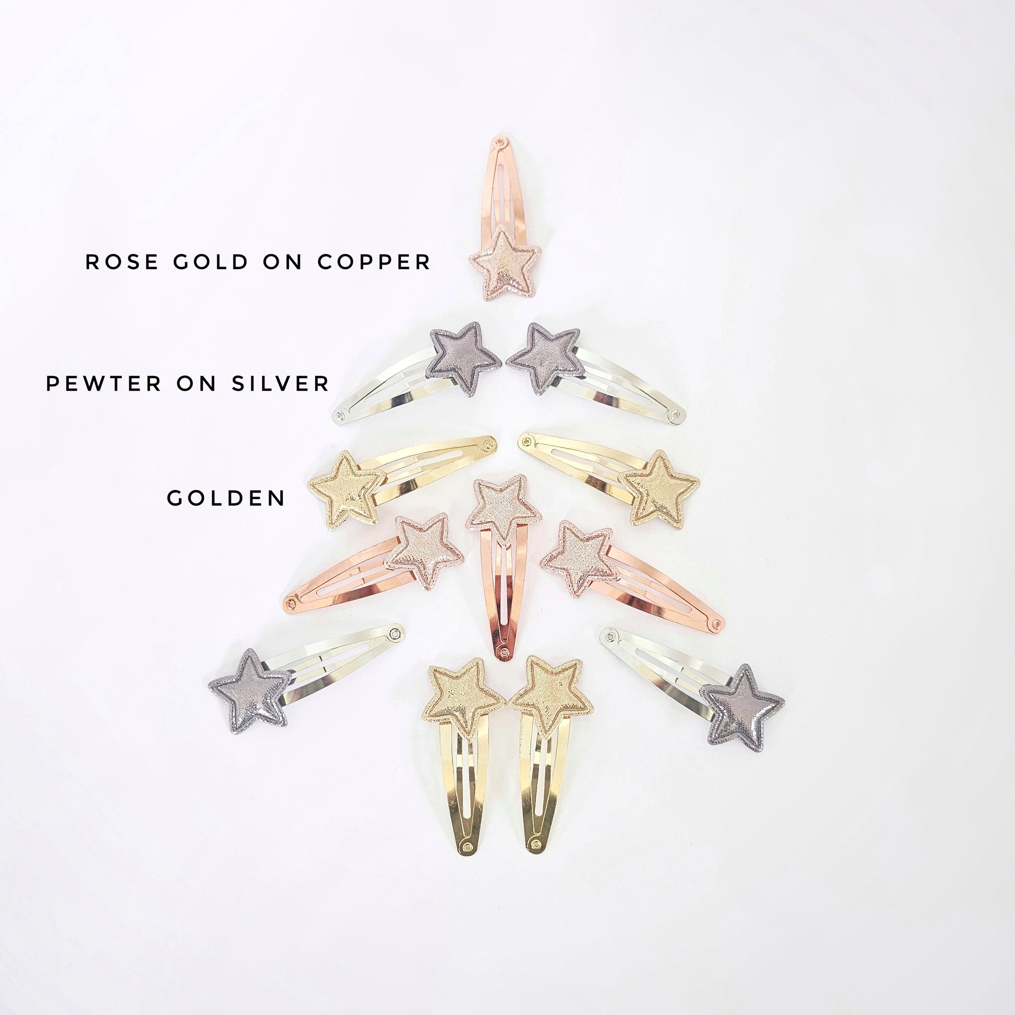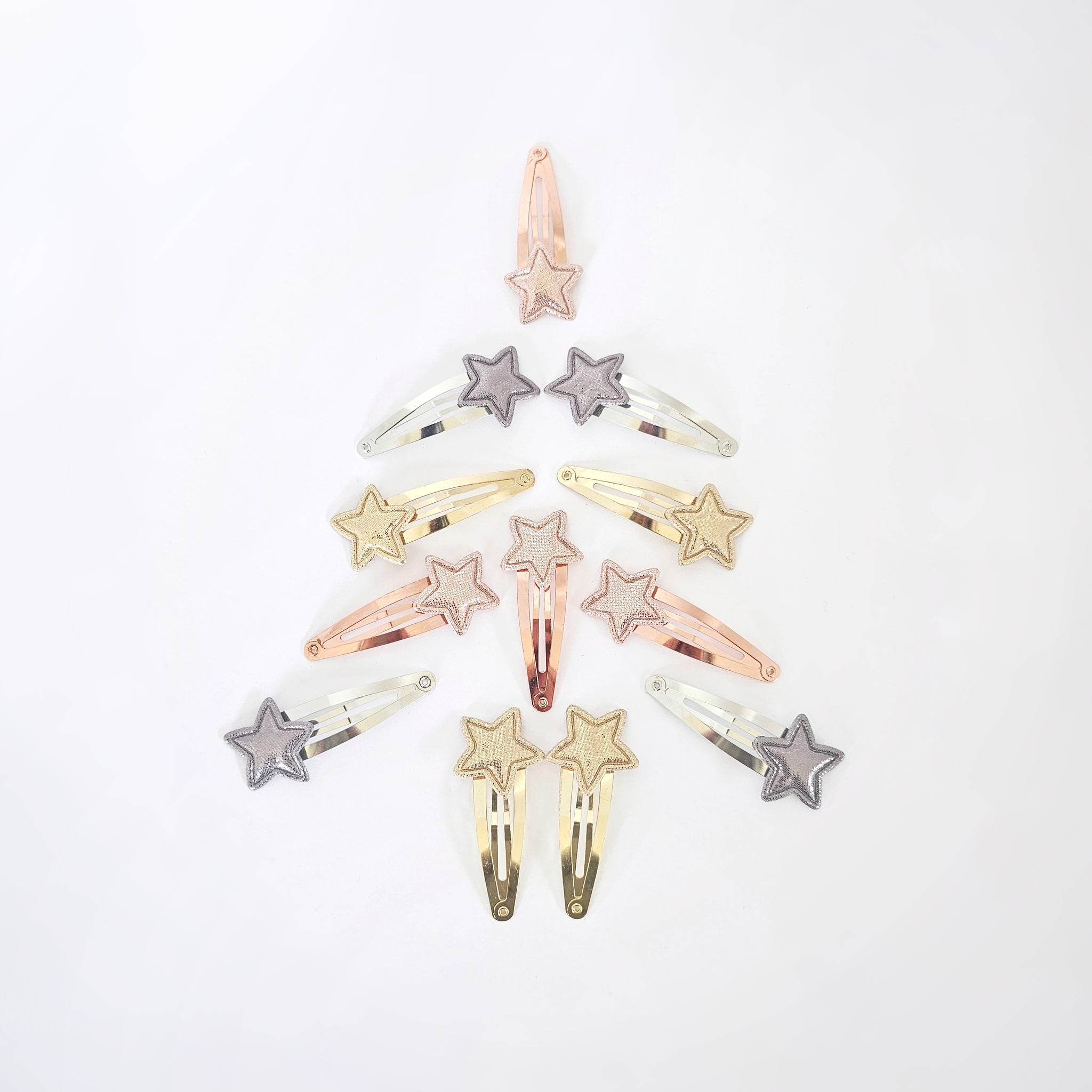 Shine throughout the festive season and beyond with these 5cm snap hair clips. Embellished with shiny, lightly padded stars, they come in a set of 3, or pairs that look cute with pigtails, and are ideal for holding back those wipsy flyaways.